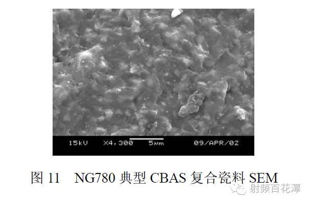图9、10、11 分别为NG780 流延生瓷料带、低温共烧多层微电路模块,以及典型瓷体的微观结构SEM 照片。从图看出,生瓷料